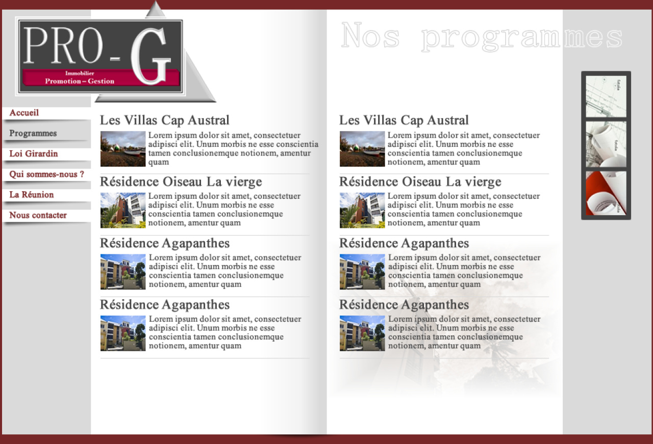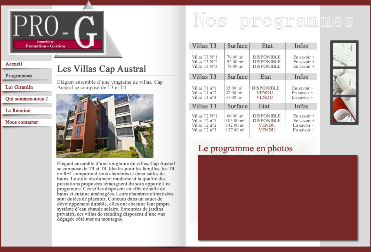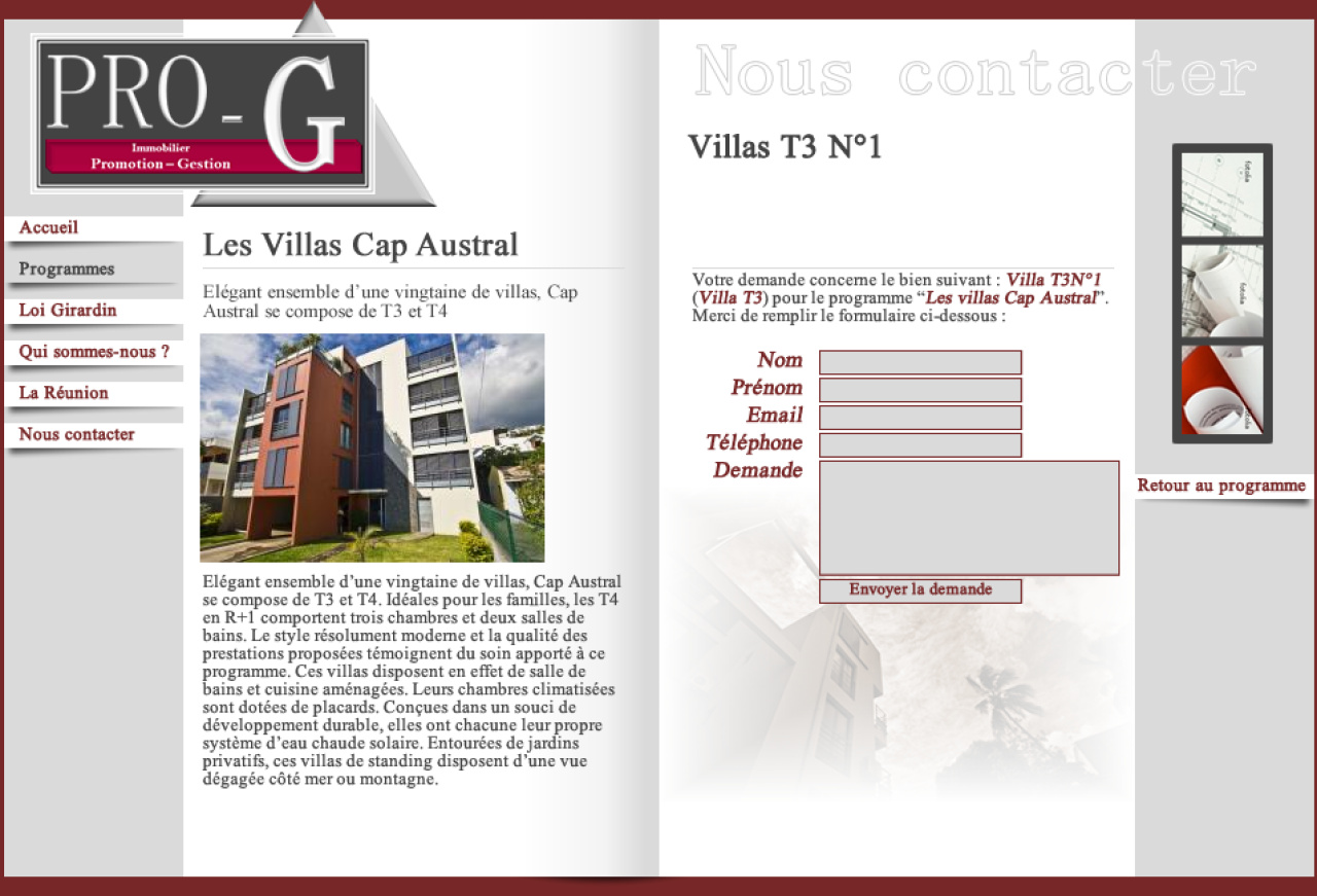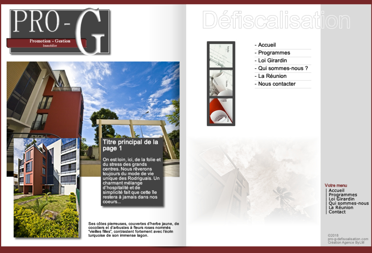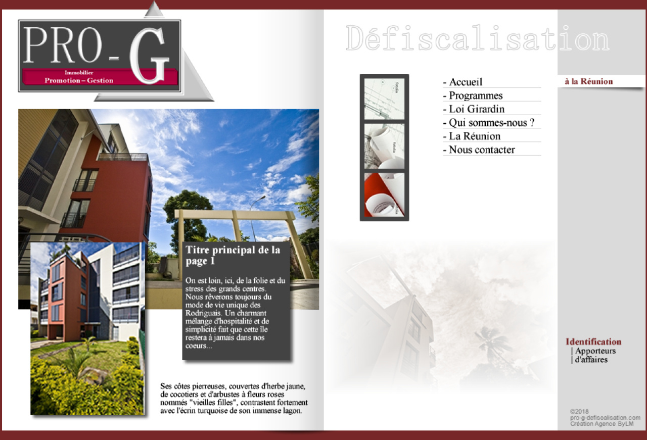 Dns le cadre d'un nouveau programme imobilier à l'île de la Réunion, le cient nous a laissé carte blanche pour la conception du logo et des différents modules qui composent le site Internet :