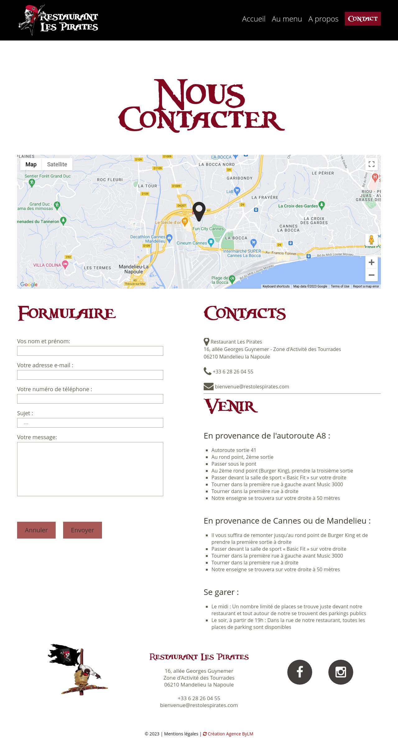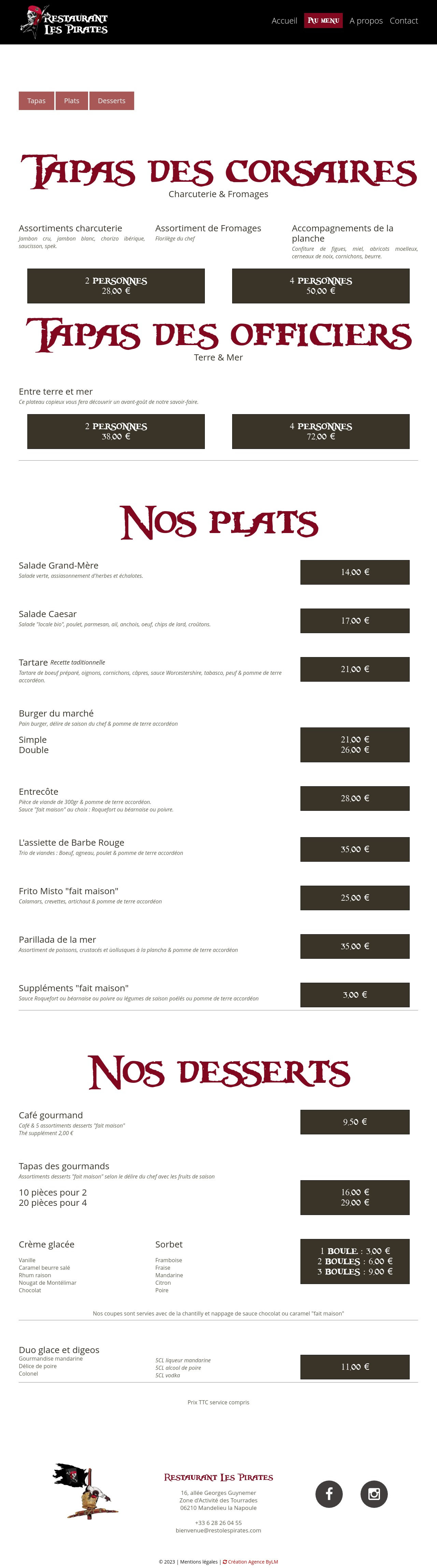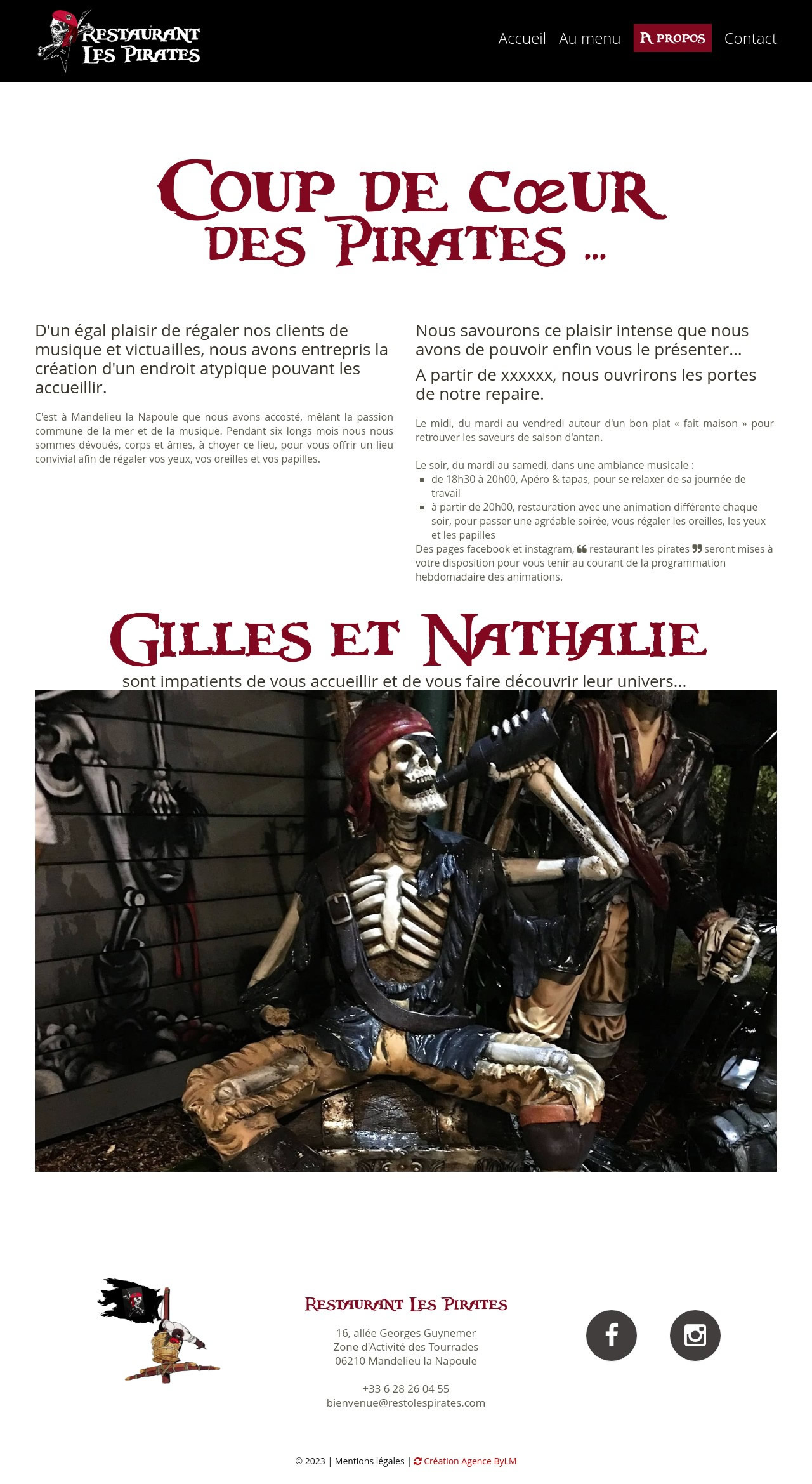 Site vitrine du restaurant les Pirates à Mandelieu