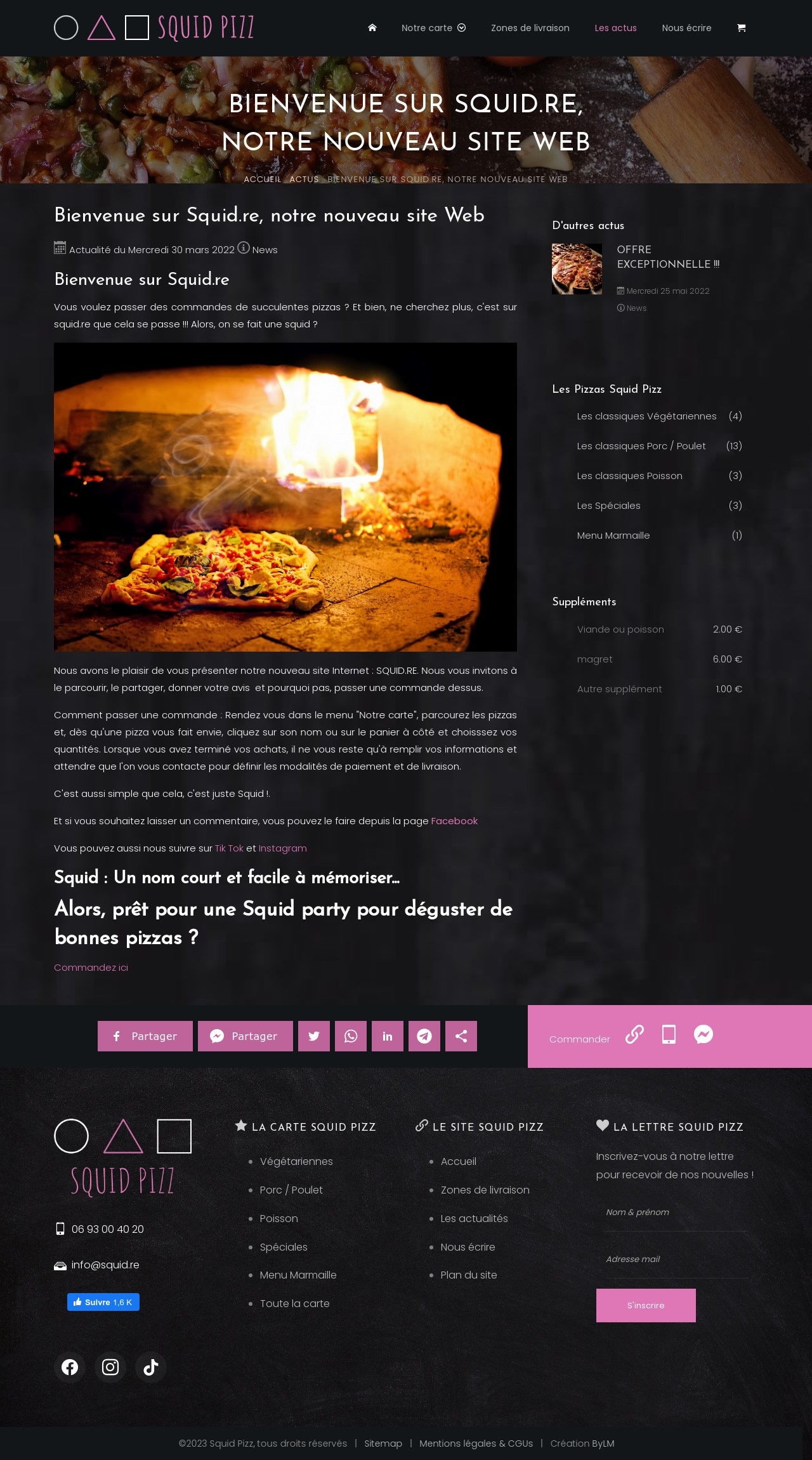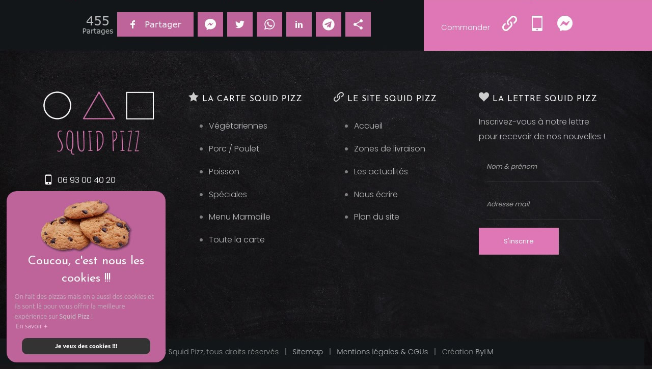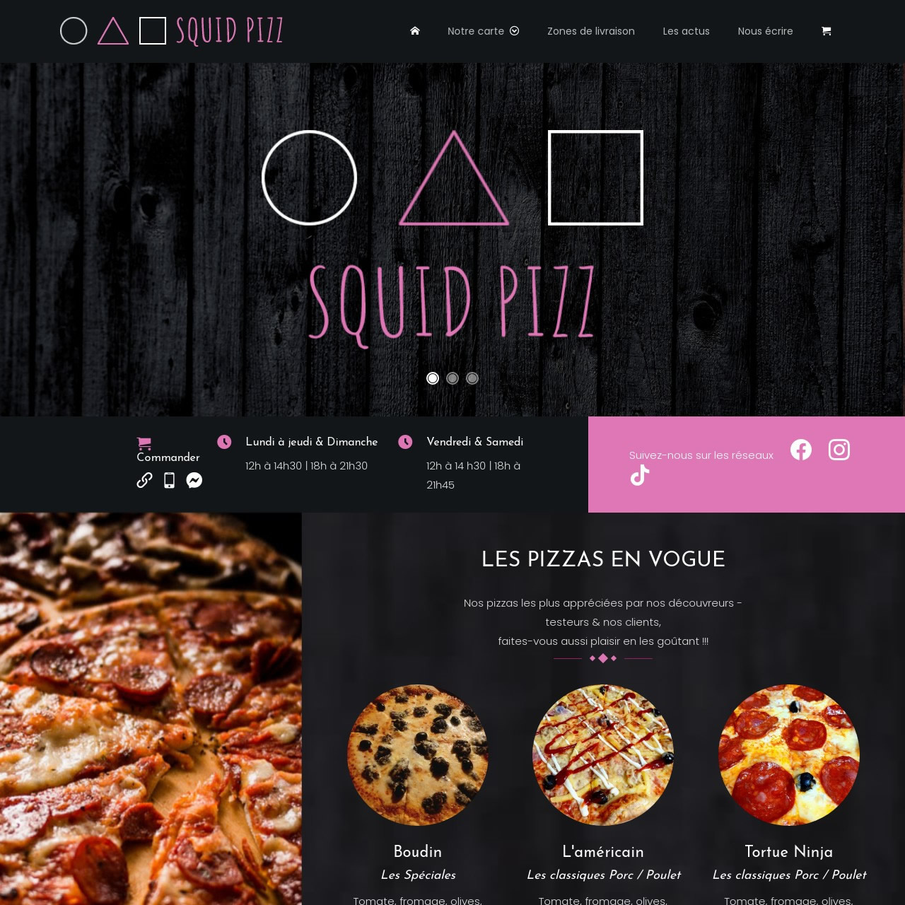 SquidPizz nous a confié la réalisation de son site Internet, sa boutique en ligne (intégralement écrite par nos soins) et son espace SAAS pour l'administration des ventes et du chiffre d'affaires Nous avons également accompagné Squid dans la réalisation de ses flyers pour la distribution locale